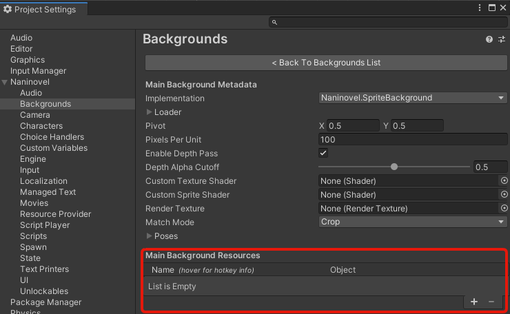 Notice, that while they are not assigned in backgrounds resources manager menu: