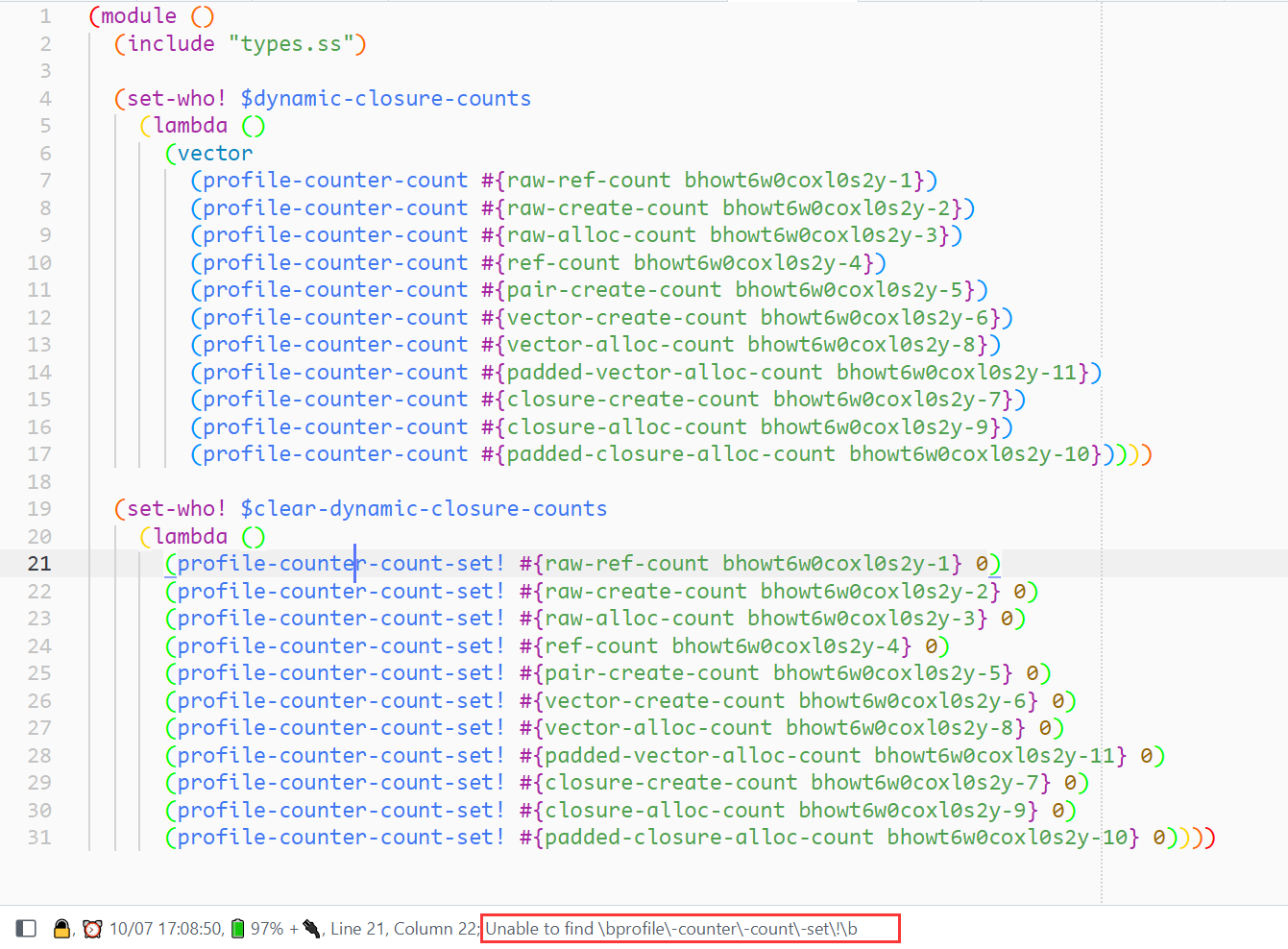 (profile-counter-count-set! #{padded-closure-alloc-count bhowt6w0coxl0s2y-10} 0))))And there is another problem of selecting word with alt+f3, as shown below
