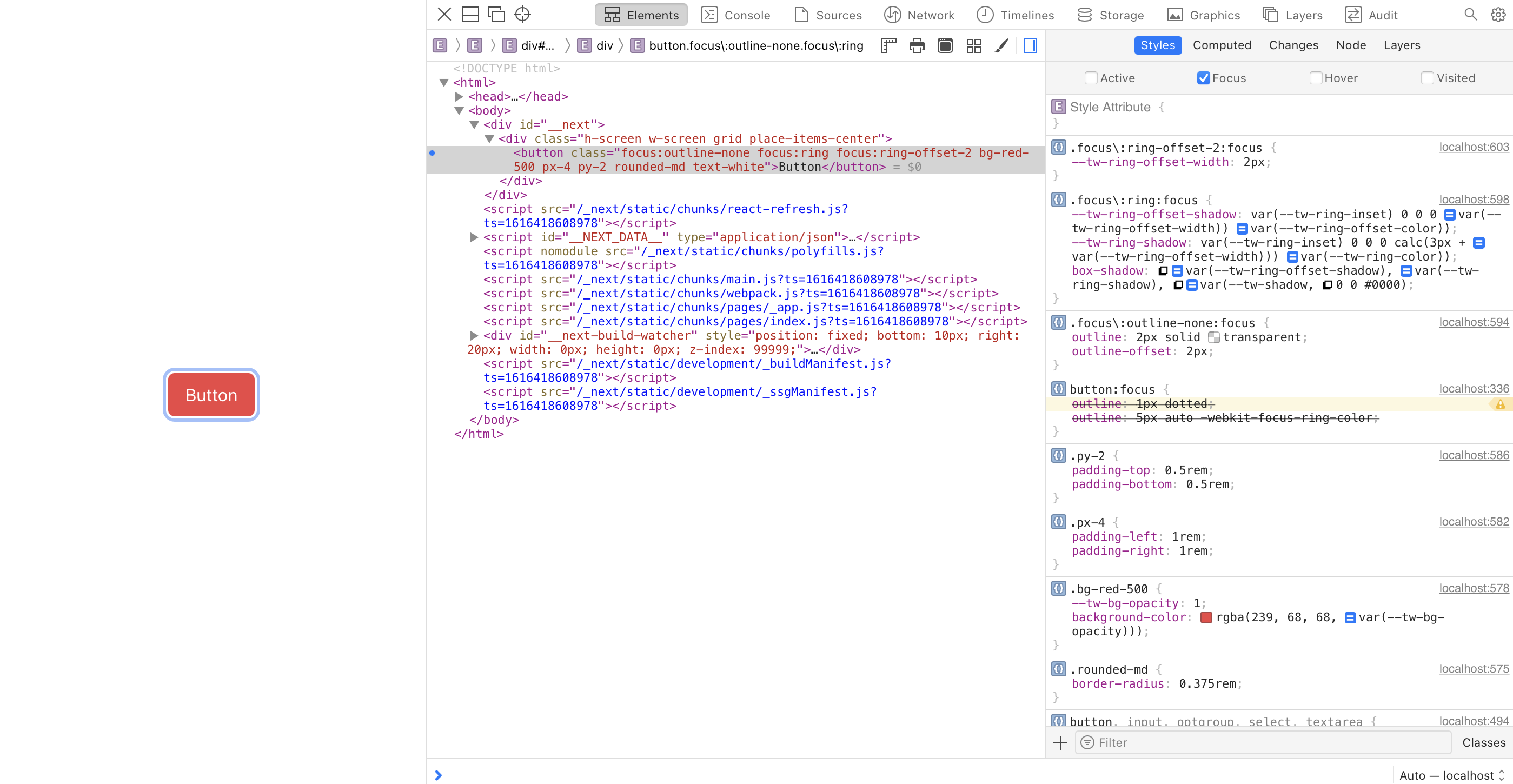 Hey! Sorry I can't really figure out what you mean, the repository you provided is way too big/complex for me to get set up and find the issue, but when I created my own project to test this out with Next, the focus:ring utilities work as I'd expect. I'm not sure what I should be looking at in your screenshot — it looks like all the classes are there with the correct CSS rules.