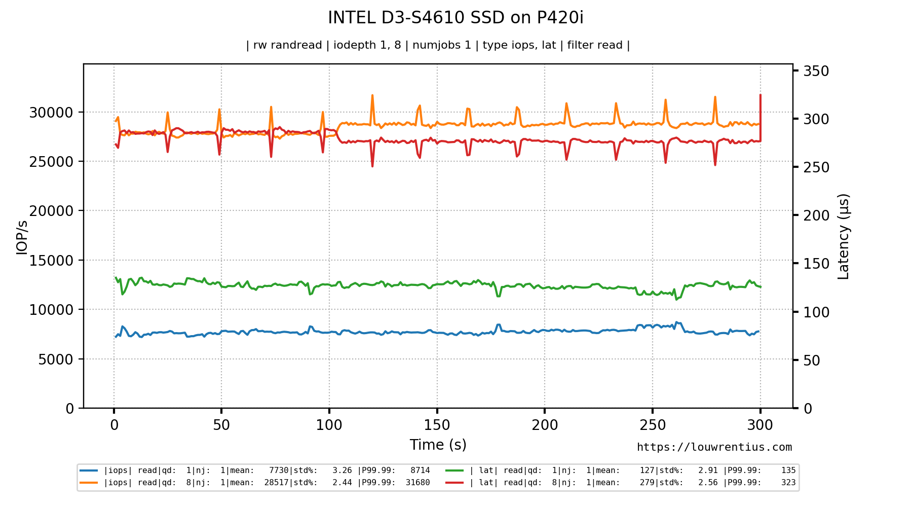 Please note that these benchmark numbers are not representative of the capabilities of the SSD as the RAID controller is the bottleneck.