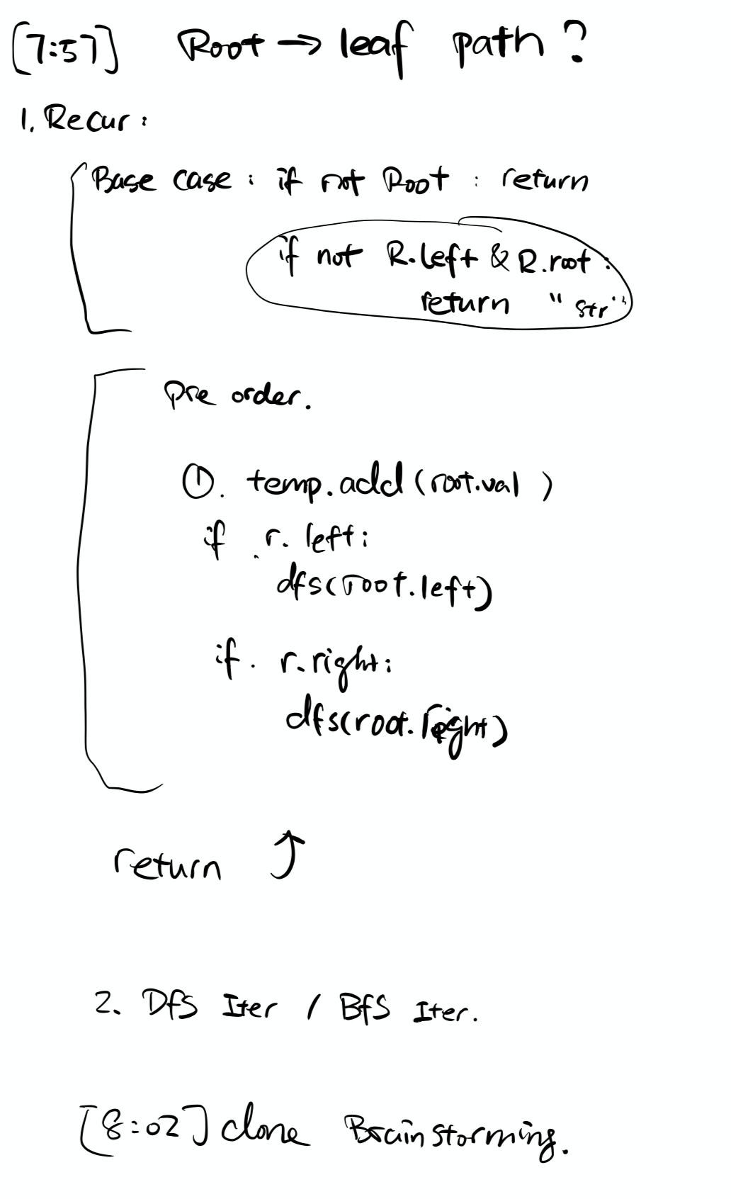 self.dfsHelper(root.right, tempPath + str(root.val) + "->", res)[8:11] Solution 2 : Iterative BFS