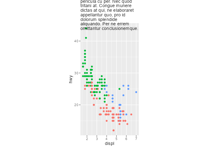 ggplot(mpg, aes(displ, hwy, colour = drv)) +