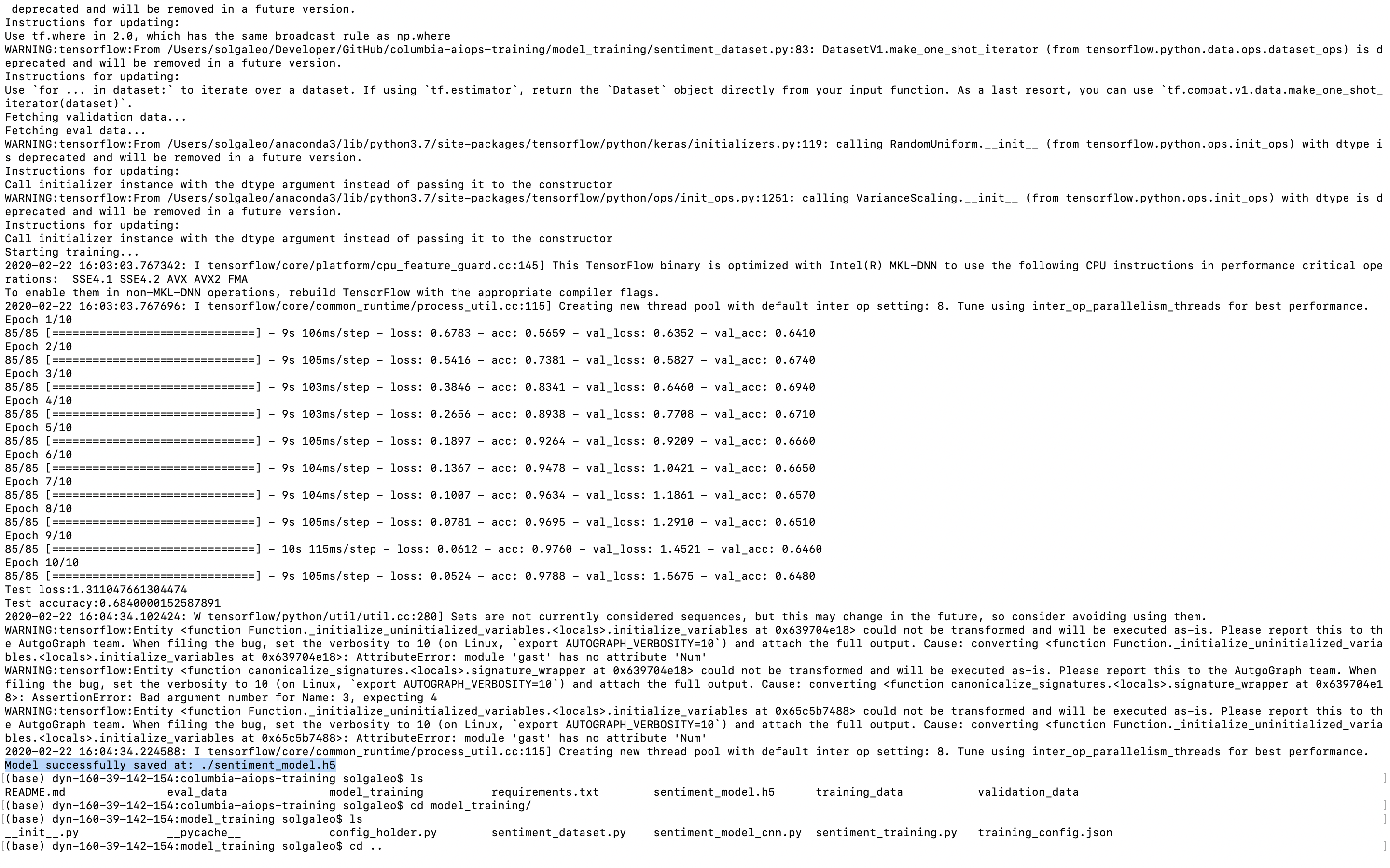 Ran the model locally. Successful result see below highlight line.