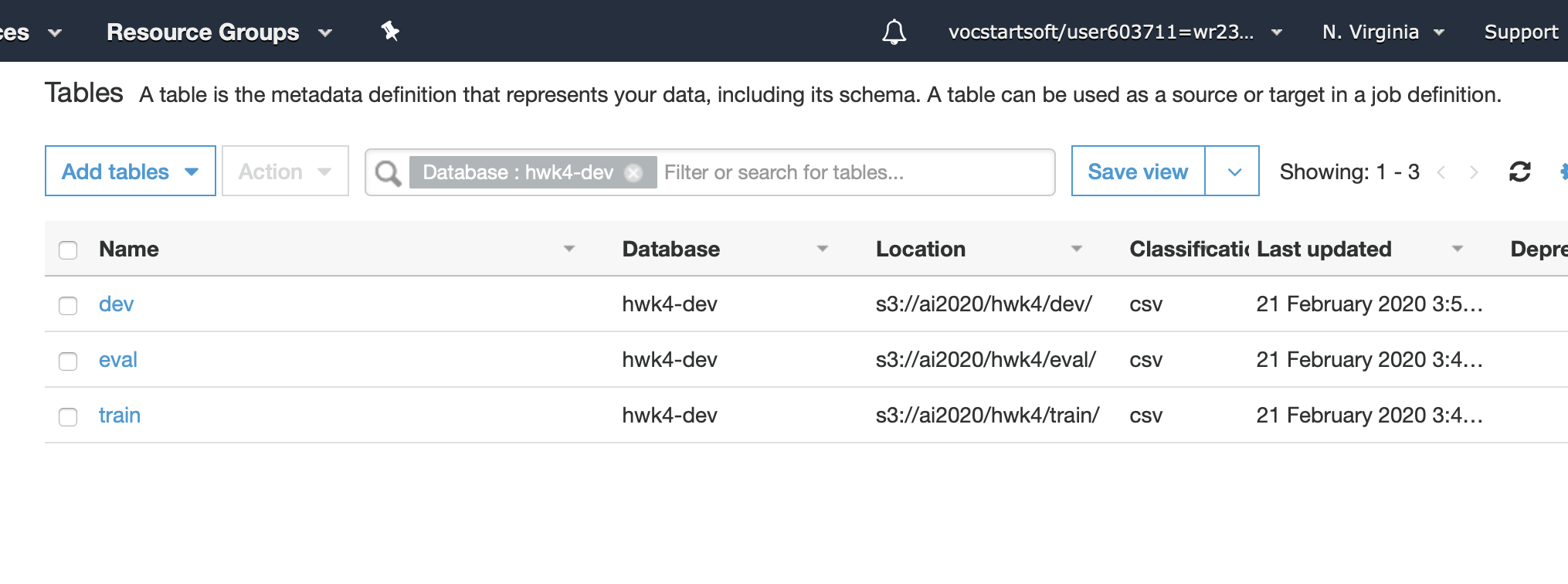 Ran crawlers on each of them to created 3 tables to catalog.