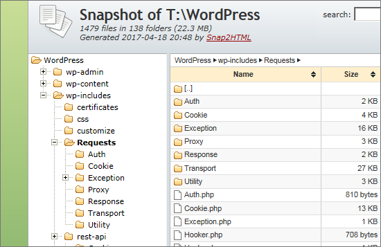 This application takes a "snapshot" of the folder structure on your harddrive and saves it as an HTML file. What's unique about Snap2HTML is that the HTML file uses modern techniques to make it feel like a "real" application, displaying a treeview with folders that you can navigate to view the files contained within. There is also a built in file search and ability to export data as plain text, csv or json. Still, everything is contained in a single HTML file that you can easily store or distribute.