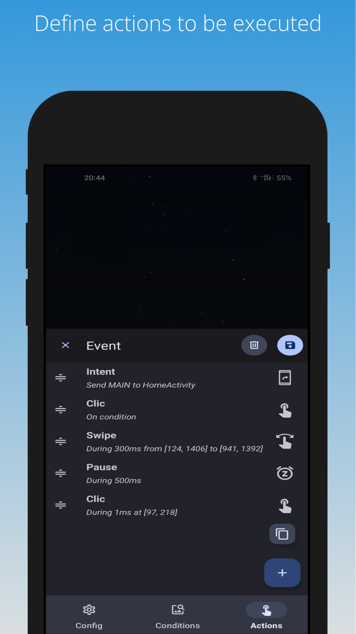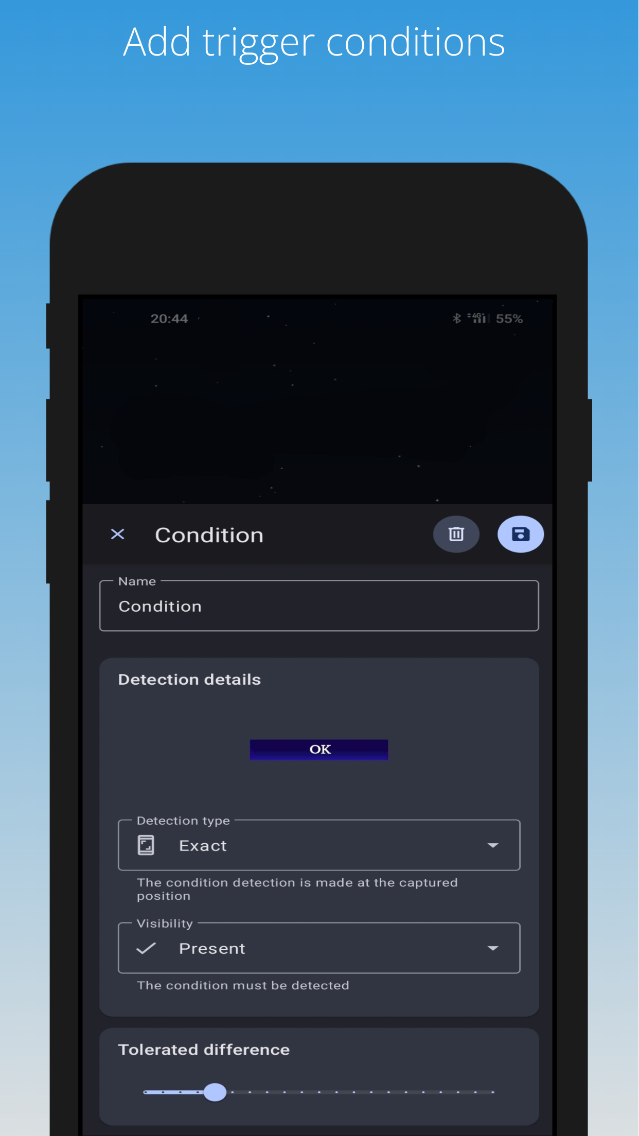 Smart AutoClicker is an Android application allowing to automate repetitive task by clicking automatically for you on the screen. Unlike the regular auto clicker application, the clicks aren't based on timers to execute the clicks. Instead, it allows you to capture an image from a part of your screen and execute the click once this image is detected again.