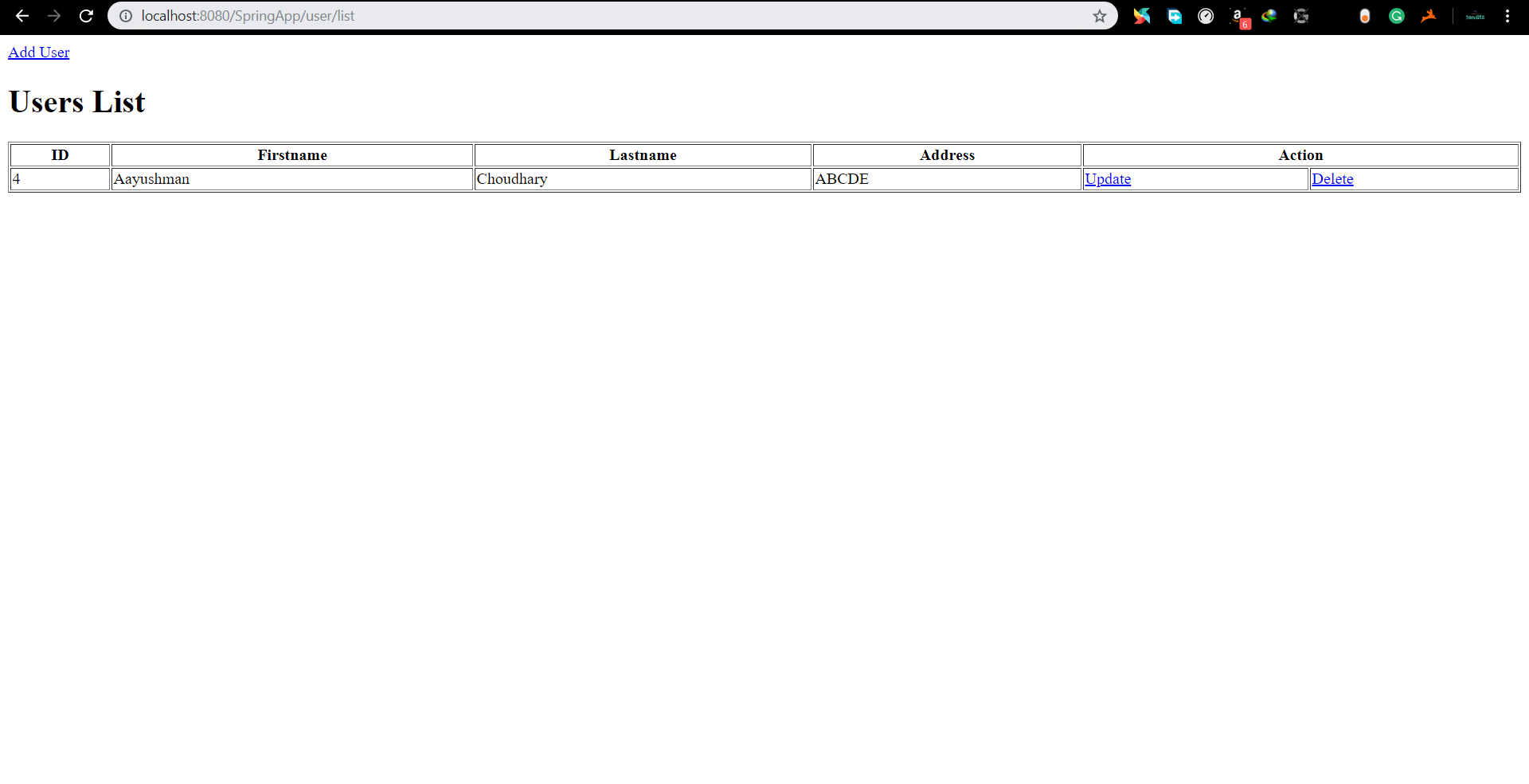 After completing the above steps, you're good to go after starting the server, go to: http://localhost:8080/SpringApp/user/list on your browser.