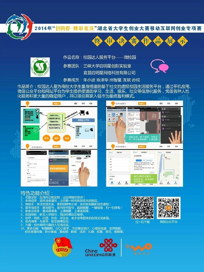 校园达人是为高校学生量身制作的在线校园社交平台,通过手机App、微信公众平台和Web站点为学生提供学习、生活、社交等信息化服务。其中为方便广大新生入学,减少更多不必要的麻烦,校园达人提供了一个入学指引、玩转校园指南类的App;此外,还推出了一系列包括考试资料查询共享与下载、知识问答、经验在线交流等学习类的实用型App,比如自习室查询助手、考试助手、校园学习考试资料共享App等;还拥有课表秘书功能,规定时间段提醒上课时间、地点,同时还可以与上同一节课及同院系同学进行聊天;图书馆助手查询图书,室内找书指引,超期提醒,一键续借,扫一扫荐购;并且针对学生们生活中普遍关注的美食出行、兼职求职、物品交换、电脑维护等来提供资讯推荐,比如校园宣传栏App(可发广告、失物招领等)、二手物品交易App、腾讯QQ助手等;校园达人更是以社团组织、班级活动的动态跟踪为主,将各类集体生活的多彩斑斓映射到校园的每个角落,如校园热点新闻、校园BBS,校园贴吧等。Web端访问地址->http://xlanlab.com
