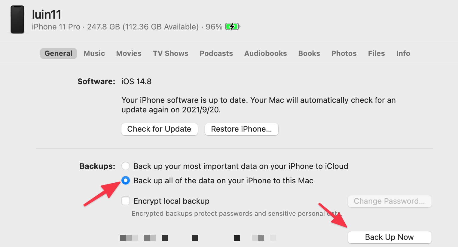 Back up iPhone with your Mac.