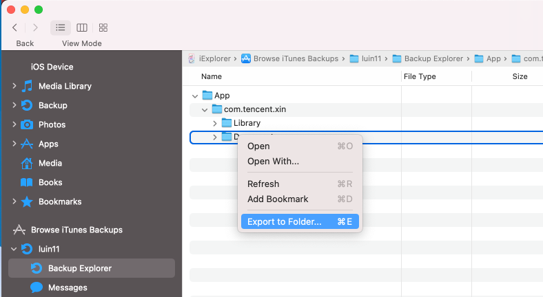 Use iExplore to export "Documents" to the local system.