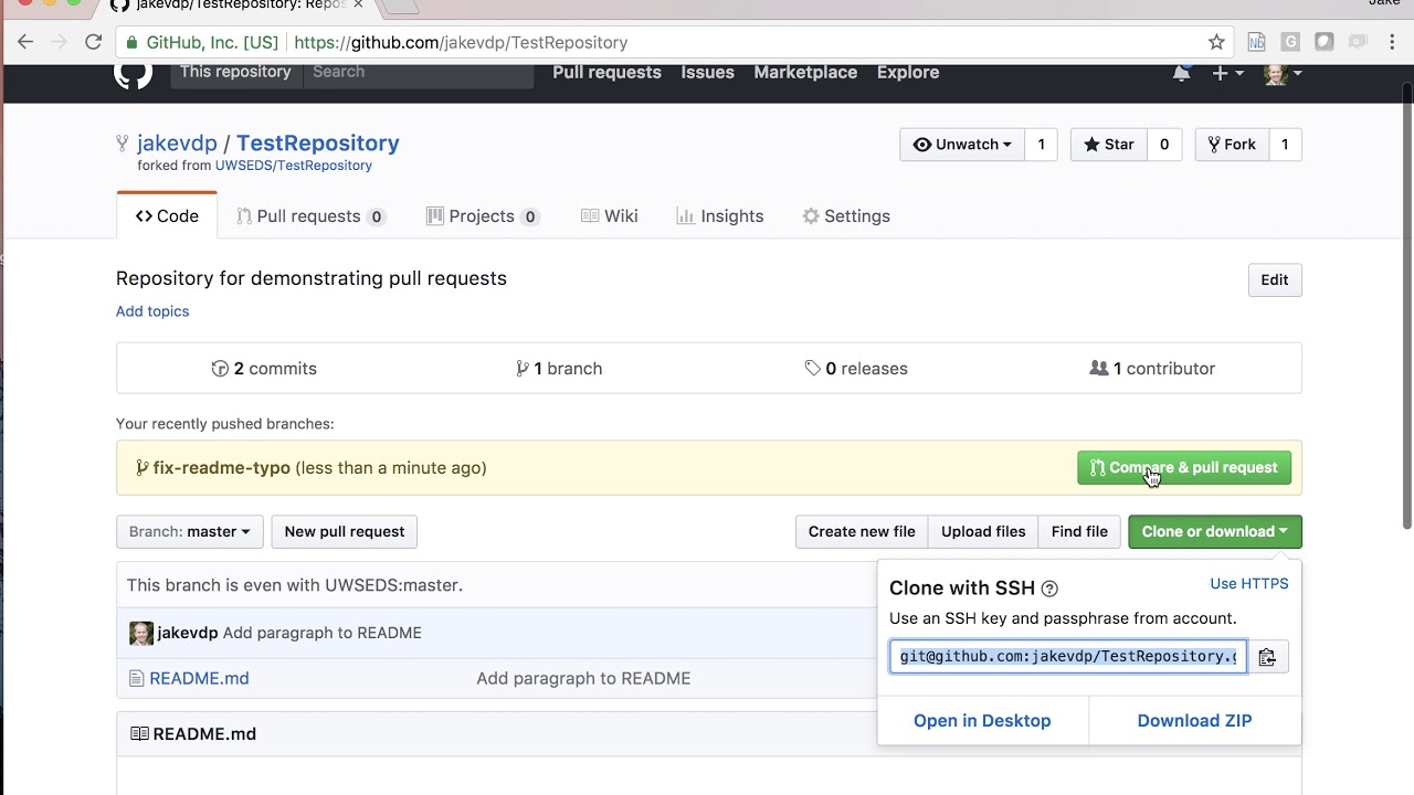 Learn more how to pull request from your local machine using GitHub Desktop to the main repo here.